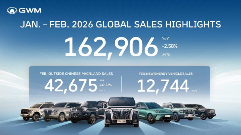 GWM recently released its production and sales report for February 2026. The company sold 72,594 vehicles in February, bringing total sales for the first two months of the year to 162,906 units. Among them, overseas sales reached 42,675 vehicles, up 37.36% year-on-year, maintaining strong growth momentum. Supported by its steadily advancing ecosystem-based globalization strategy, GWM continues to demonstrate resilience and long-term growth potential in a complex market environment.